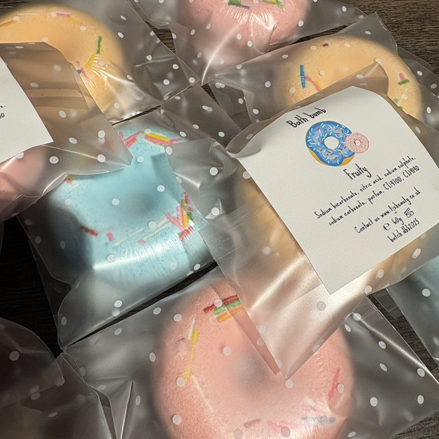 Enjoy a fun and relaxing bath experience with our Simple Ingredient Donut-Shaped Bath Bombs! Crafted using only natural, chemical-free ingredients, these delightful bath bombs add a splash of color and a refreshing scent to your bath without any hidden chemicals. Perfect for kids and adults alike, they transform ordinary bath time into a playful, spa-like treat. Easy to use and gentle on the skin, these donut-shaped bombs fizz away to soften water and leave your skin feeling refreshed and moisturized. Make every bath an enjoyable escape with our safe, simple, and irresistibly fun bath bombs designed to brighten your day!